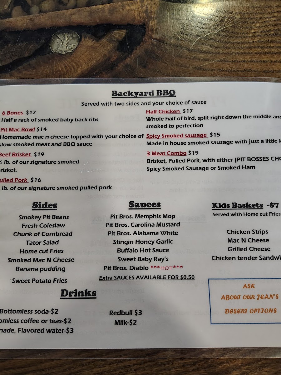 In conclusion, Pit Bros Barbecue’s menu offers a diverse range of options that are sure to satisfy all kinds of cravings. Whether you're looking for a snack, a full meal, or something for the kids, their offerings cater to every taste with generous portions and irresistible flavors.